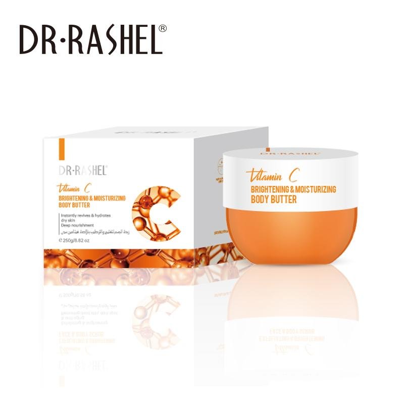 زبدة الجسم Dr. Rashel بخلاصة فيتامين C تغذي البشرة بعمق وترطبها مع تفتيح وتنعيم. غني بفيتامين C، يساعد على إعادة الحيوية ومنح البشرة إشراقة صحية. مناسب لجميع أنواع البشرة، يُستخدم يوميًا للحصول على بشرة ناعمة ومشرقة.