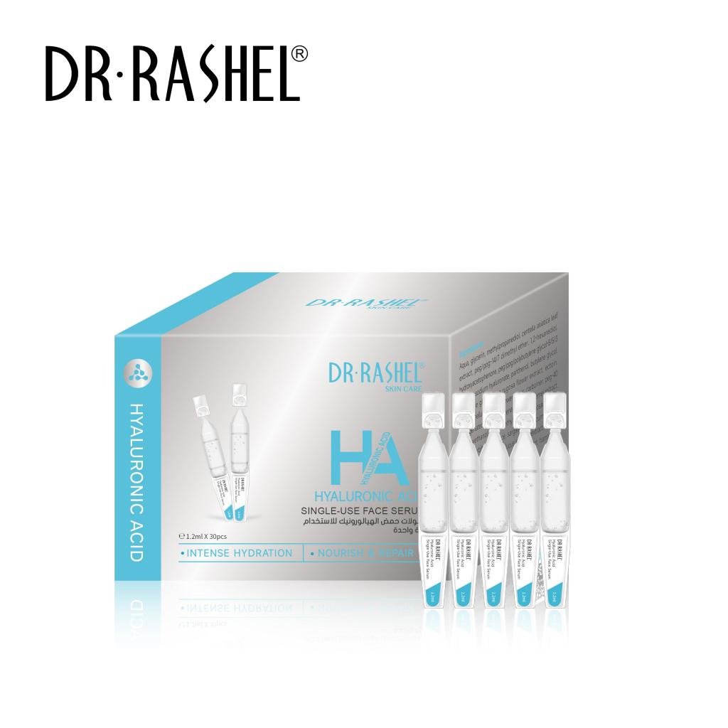 سيروم أحادي الاستخدام بحمض الهيالورونيك – 30 أنبوب، 12 مل لكل أنبوب. يرطب البشرة بعمق ويمنحها الامتلاء لتصبح ناعمة وملساء ومشرقة. مناسب للبشرة الجافة أو المجهدة من الجفاف.